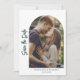 Capturez la magie de votre histoire d'amour avec notre élégant et personnalisable Save the Date carte photo, une toile qui attend de cadrer votre moment le plus chéri. Ce modèle magnifiquement conçu dispose d'une typographie de script sophistiquée qui danse à travers la carte, créant une atmosphère intime et romantique qui est la vôtre. Cela sauve la date non seulement informe vos invités de votre prochaine célébration, mais aussi donne le ton pour le jour magique à venir, les laissant impatient d'anticiper votre moment spécial. Remplacez facilement la photo et ajoutez vos détails en cliquant sur le bouton "Personnaliser".