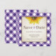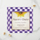 Annoncez votre jour spécial avec cette carte de sauvegarde de date rustique, parfaite pour un mariage d'automne avec du gingham violet. Avec un charmant motif à carreaux de pique-nique violet, des tournesols jaunes audacieux et un fond vintage, cette conception de sauvegarde de date donne le ton pour les mariages rustiques chics, les célébrations champêtres et les lieux de grange ou de jardin. Les détails de votre annonce de mariage sont stylisés en caractères gras sans et avec empattements, le motif gingham étant repris au dos. Un excellent choix pour les mariages sur le thème de l'automne et les rassemblements conviviaux. Achetez plus de cartons d'annonce de mariage sur VG Invites sur Zazzle : www.zazzle.com/vginvites.