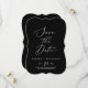 Ce délicat mariage de calligraphie noire foncée sauf la carte faire-part date est parfait pour un mariage moderne. Le design minimaliste romantique présente une belle et élégante typographie blanche sur un arrière - plan noir au look épuré et simple.