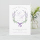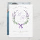 Un mariage élégant, à l'exception de l'annonce de la date avec des fleurs de lavande d'aquarelle et une couronne de fer à cheval feuille finie avec joli arc coquette. Votre monogramme est en caractères lilas traditionnels script et date mariage en gris serif au centre. Personnalisez encore plus avec vos noms, l'emplacement du mariage et la photo au verso.