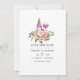 Événement trendy save the date mariage de dégustation de vin avec roses roses et feuilles dorées.