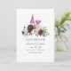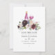 Invitation de mariage tendance pour dégustation de vin avec des fleurs bordeaux - marsala et bleu marine avec des accents de bleu poussiéreux, rose tendre et or rose conçue pour être rapidement et facilement personnalisée selon les spécificités de votre événement.
