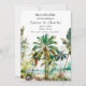 Cette aquarelle élégante et belle à sauver l'invitation de la date dispose d'une plage et des palmiers. Le texte combine écriture manuscrite et polices sans serif pour un look élégant et moderne. Il est parfait pour une plage d'été ou un mariage de destination tropicale.