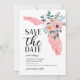 Élégant script Floride mariage de destination enregistrer la date avec une illustration de l'État floral rose.