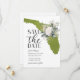 Carte de sauvegarde de mariage de destination en Floride verte mousse avec une illustration de l'État américain fleuri.