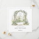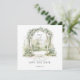 Une élégante arche florale boho en plein air, dans des tons de blanc et de vert, avec une belle typographie de style antique inspirée des inscriptions romaines du premier siècle. Parfait pour un mariage de printemps, d'été ou d'automne. Blanc uni au dos.
