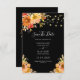 Ces cartes datent disposent d'un design floral de chute d'aquarelle moderne avec des lampes à cordes sur un arrière - plan noir. Personnalisez avec votre texte. Suite mariage et d'autres produits correspondants également disponibles.
