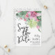 Un design tropical qui embrasse la beauté tranquille de la nature mêlée à un côté ludique qui vous aidera à vous amuser. Un mélange de feuilles tropicaux verdoyants apaisants, dont des feuilles de bananes, des palmiers, des feuilles de monstères et des plantes de princesse roses, ainsi que des fleurs apaisantes d'orchidées rose violet et des fleurs de protéa, entrelacées avec divers autres feuillages. En ajoutant un élément de plaisir, un arrière - plan noir "point de désordre" ou "point dalmate" sur le dos insuffle le design avec une touche ludique (vous pouvez enlever si vous voulez). Améliorée par une police manuscrite moderne, cette impression enchanteresse rayonne de charme et de sophistication. Ce design polyvalent apporte un sens du paradis tropical à tout cadre ou occasion spéciale, le rendant parfait pour un mariage de destination, ou juste quand vous voulez ajouter une flamme tropicale. Chic Modern Floral Watercolor Mariage tropical Enregistrer la date Disponible en tant qu'invitation imprimée, ou en tant qu'invitation numérique téléchargeable que vous pouvez envoyer par e-mail ou avoir imprimé localement !