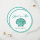 Cette carte ronde et moderne Save the Date présente un magnifique coquillage à coquille d'aqua contre une bordure blanche d'arrière - plan et d'aqua. Produits correspondants disponibles. POUR VOIR LA COLLECTION ENTIÈRE, VISITEZ LE SITE : glamprettyweddings.com. Disponible en 7 couleurs glamtastiques : rose, lilas, aqua, bleu menthe, jaune, pêche, framboise. Utilisez le bouton "Customiser" pour personnaliser avec votre propre texte. Pour toute question ou demande personnalisée, envoyez un courriel à cheryl@glamprettyweddings.com/contactez. "Scallop Seashell Beach" design original par Cheryl Daniels © 2014.