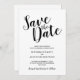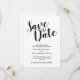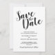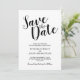 Modern Script Wedding Save the Date Card dispose de titre en noir de police de script moderne avec détails mariages en noir moderne sans serif police sur arrière - plan blanc.