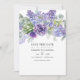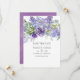 Invitation de mariage tendance avec des feuilles d'eucalyptus et des plantes succulentes mélangées à des fleurs dans des accents de lilas pastel, de violet et de violet. Idéal pour tout thème ou mariage champêtre.