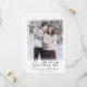 La photo de votre couple est présentée sur cette élégante carte de datation. Un cadre blanc simple lui donne l'importance qu'il mérite. Enregistrer la date est écrit dans un texte moderne et tendance. Deux lignes de texte vous permettent de personnaliser votre message. Conçu pour embellir facilement n'importe quelle photo de style pour n'importe quelle saison. Très facile à customiser.