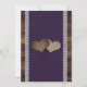 Mariage rustique violet et tournesol enregistrer les cartes de date avec tournesol et lumières à cordes contre un arrière - plan en bois de grange avec burlap et dentelle. Deux coeurs de burlap à l'arrière.