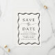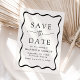 Annoncez votre prochain mariage en style avec notre mariage Modern Wavy Frame enregistrer les dates! Le design présente vos noms et détails mariages encadrés par un cadre ondulé noir contrastant avec un arrière - plan crème pâle. Ce mélange exquis de design moderne et rétro assure que votre sauvegarde de la date n'est pas seulement un rappel de votre célébration à venir, mais un gardien chéri qui capture l'essence de votre histoire d'amour.
