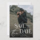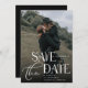 Mariage de typographie moderne enregistrer la carte de date avec photo unique, date, noms et script de typographie en caractères gras tendance.