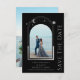 Mystical Black Silver Sun Moon Star Space Save The Dates est doté d'un cadre de soleil, de lune et d'étoiles en argent sur un arrière - plan noir. A l'intérieur est votre photo préférée et votre personnalisation enregistrer les informations de date. Ajoutez une photo supplémentaire au verso. Personnalisez en modifiant le texte dans les zones de texte. Conçu pour vous par ©2022 Evco Studio www.zazzle.com/store/evcostudio
