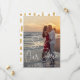 Photo moderne enregistrez la carte de date avec votre image verticale fond de saignement avec un texte superposé avec les mots "Save Our Date" dans une fine police de script d'écriture blanche. Voici deux lignes de texte pour les détails de votre mariage. Le côté arrière a un motif abstrait en or et blanc et peut être retiré en cliquant sur le bouton "personnaliser". Un design simple mais élégant qui fait de votre photo la principale caractéristique.
