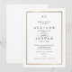 Ce Faire-Part de Mariage Élégant Classique Or est simple et polyvalent. Il présente un design chic blanc et noir avec un monogramme, des détails en script, un cadre or simple et un texte éditable formel. Cliquez sur le bouton d'édition pour personnaliser ce design.