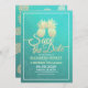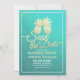 Enregistrer La Date / Carte Faire-part de mariage Modèles - Elégant Faux Gold Foil ananas Couple sur Turquoise vert et bleu turquoise Roses Floral Damask Papier Arrière - plan. Un design parfait pour votre grand jour. Tous les styles de texte, couleurs, tailles peuvent être modifiés selon vos besoins !