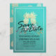 Enregistrer La Date / Carte Faire-part de mariage Modèles - Elégant Faux Gold Foil ananas Couple sur Turquoise vert et bleu turquoise Roses Floral Damask Papier Arrière - plan. Un design parfait pour votre grand jour. Tous les styles de texte, couleurs, tailles peuvent être modifiés selon vos besoins !