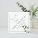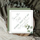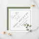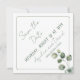 Carré moderne Sauvez la date, propre et minimaliste avec eucalyptus, verdure et une palette de couleurs vertes. Le devant a tout le texte en 45° pour le rendre plus intéressant et mémorable. Une ligne étroite sage comme un cadre avec une seule branche d'eucalyptus du coin. Le côté arrière a une couleur verte sauge solide comme dans les feuilles d'eucalyptus verts. Ce design propre est facile à adapter à n'importe quel thème et palette de couleurs. Mélangez et faites correspondre votre événement spécial. Facile de Customiser votre texte à l'avant. Différentes formes d'angle disponibles.