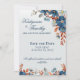 Save The Date Mariage Fleuris Bleu Jacinthe et Cuivre