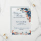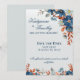 Ce magnifique design personnalisé présente des fleurs bleues et cuivrées sur un fond bleu clair. Étape de mariage et invitation et cartes de remerciement coordonnées.