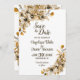 Cette carte de rendez-vous de mariage floral automnal capture l'essence de l'automne avec son design floral rustique. La combinaison de teintes d'automne, de pétales en fleurs et de feuilles dorées crée une ambiance charmante et romantique. Cette carte est parfaite pour les couples qui prévoient un beau mariage d'automne et est le moyen idéal pour annoncer vos prochaines noces avec style.