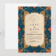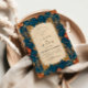 Cette conception riche en détails présente une bordure florale d'inspiration baroque dans des tons de sarcelle foncée et d'or, encadrant un centre de parchemin classique. Le motif botanique orné ajoute une élégance et une sophistication à l'ancienne, parfait pour les mariages vintage, formels ou romantiques avec une touche de flair royal.