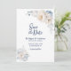 Informez vos amis et proches de votre prochain mariage avec cet élégant mariage floral bleu et blanc poussiéreux. Le texte personnalisable vous permet d'ajouter sans effort les détails nécessaires. Une variété de types de papier et de styles d'angle sont disponibles pour vos invitations uniques, ainsi que l'option de téléchargement si vous préférez un format numérique.