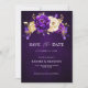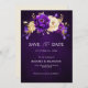 Carte de mariage à thème violet or royal élégant avec un bouquet élégant de fleurs de rose de couleur violet royal, indigo, or, jaune et des feuilles d'eucalyptus. N'hésitez pas à me contacter pour toute aide de personnalisation ou si vous avez besoin d'un autre produit avec ce design.