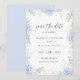 Faites savoir à vos invités la date de votre mariage avec style grâce à ce faire-part de mariage floral romantique, mettant en vedette une délicate aquarelle d'hydrangea et une typographie élégante. Le design floral bleu clair encadre magnifiquement les noms des mariés, créant un look intemporel et sophistiqué. Parfait pour les mariages en plein air, les célébrations printanières ou tout événement avec un thème floral ou rustique.