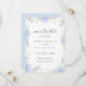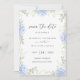 Faites savoir à vos invités la date de votre mariage avec style grâce à ce faire-part de mariage floral romantique, mettant en vedette une délicate aquarelle d'hydrangea et une typographie élégante. Le design floral bleu clair encadre magnifiquement les noms des mariés, créant un look intemporel et sophistiqué. Parfait pour les mariages en plein air, les célébrations printanières ou tout événement avec un thème floral ou rustique.