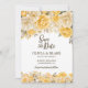 Ce mariage élégant à fleurs de rose jaune, sauf la date, est conçu pour les couples à la recherche de sophistication et de beauté intemporelle dans l'annonce de leur journée spéciale à des proches. Apportez de la joie aux boîtes aux lettres de vos invités et évoquez l'excitation pour vos prochains noces avec cette sauvegarde-la-date.