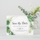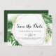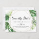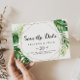 Cette destination géométrique tropicale horizontale mariage sauf la date est parfait pour un mariage de verdure. Le design se compose de palmiers verts aquarelés peints à la main et de feuilles de bananes soigneusement arrangés en de beaux bouquets, ornant un cadre géométrique doré.