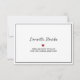Célébrez votre fiançailles avec ces cartes à plat recto verso personnalisées de juin 2024 mariage "enregistrer la date". Sur le devant, ces élégantes cartes blanches et noires montrent votre photo, avec les noms de la mariée et du marié, votre date de mariage, et un calendrier pour le mois de juin 2024 pour rappeler à vos invités. Ils comprennent également un petit coeur d'aquarelle bordeaux et un "cercle de dates" pour encercler la date du calendrier. À l'arrière, vous trouverez de la place pour votre emplacement mariage et plus de texte, comme les mots "invitation formelle à suivre" et votre site Web. CONSEIL : Pour faire le tour d'une autre date du calendrier, après avoir rempli tous vos autres détails, sélectionnez "customiser / personnaliser davantage". Le CERCLE DATE est l'image supérieure. Sélectionnez-le et déplacez-le à votre date de mariage. Vous pouvez également le redimensionner ou réorganiser et supprimer d'autres éléments.