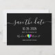 Moderne, simple, minimaliste, amusant mariage noir et blanc lgbt enregistrer l'invitation de la date avec coeur arc-en-ciel coloré mignon et cool rugueux arrière - plan métallique argent.