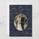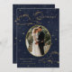 Invitation de mariage céleste mystique avec un beau croissant de lune doré, des étoiles et des nuages sur un fond bleu de minuit, associée à des polices élégantes pour vos informations personnalisées. Cette invitation est disponible en différentes couleurs de fond, bordeaux et noir, que vous pouvez trouver dans notre magasin.