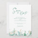 Un mariage minimaliste élégant Enregistrer la date Invitation carte avec une superbe aquarelle d'eucalyptus feuille design avec une police de script élégante. Customisez avec vos coordonnées pour informer vos invités de votre journée spéciale. Veuillez naviguer dans la suite minimale de Mariage Eucalyptus Leaf Green Gold pour trouver des articles correspondants.