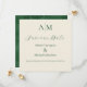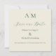 Beaux monogrammes de la mariée et du marié en haut de cette belle carte de Save the Date de mariage. Fond écru avec police verte pour coordonner avec le dos vert en détresse de cette invitation élégante. Absolument époustouflant.