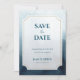Une carte moderne bleue de Save the Date avec une atmosphère abstraite mais chic.