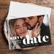 Annoncez votre grand jour avec cette carte mariage de sauvegarde de la date avec typographie moderne et une photo préférée. Conçu avec un lien scannable de mariage de code QR, il offre une façon contemporaine et élégante de tenir les clients informés. Avec des lettres élégantes et tendance, cette carte d'enregistrement à la date imprimable est disponible en téléchargement numérique pour faciliter la personnalisation et l'impression, parfait pour les couples qui aiment le design moderne et la commodité.
