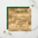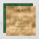 Beaux monogrammes de la mariée et du marié en haut de cette belle carte de Save the Date de mariage. Fond or faux avec police verte pour coordonner avec le dos vert en détresse de cette invitation élégante. Absolument époustouflant.
