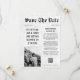 Annoncez votre histoire d'amour avec une touche moderne dans un style intemporel. Cette sauvegarde à jour inspirée du journal comprend une photo personnalisée et un design élégant en noir et blanc, associé à un code QR scannable pour un accès facile aux détails de votre mariage. Mélange de charme classique et d’élégance minimaliste, c’est la façon idéale de partager vos nouvelles passionnantes d’une manière abordable et inoubliable.