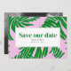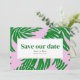 Palmiers roses et verts modernes Beach Wedding enregistrer la date avec la photo sur le dos.
