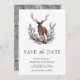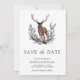 Éblouissez vos invités avec ce mariage élégant, sauvez la date avec un beau cerf, feuilles rustiques et typographie moderne. Ajoutez simplement les détails de votre événement sur ce modèle facile à utiliser et ornez cette carte avec votre photo préférée pour en faire une carte unique Enregistrer la date.