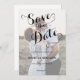 Conception moderne et élégante imprimée en noir et blanc Effet faux vélin calligraphié photo mariage Save the Date qui peut être personnalisé avec votre texte. Cliquez sur le bouton "Personnaliser" et utilisez notre outil de conception pour modifier ce modèle. Découvrez la boutique Graphic Art Design pour d'autres produits qui correspondent à cette conception !