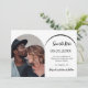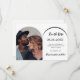 Une photo Enregistrez la carte de date pour votre mariage. À l'avant : Ajoutez votre propre photo de taille verticale à l'intérieur du cadre photo en arc. Un arrière - plan blanc chic, du texte noir. Modèles pour les noms et la date. Le nom et le texte : Save the Date sont écrits avec un script de style manuscrit moderne. Retour : vous pouvez ajouter du texte si vous le souhaitez. Accédez à l'outil de conception et ajoutez-y le calque arrière.