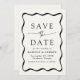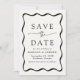 Annoncez votre prochain mariage dans le style avec notre photo Modern Wavy Frame enregistrer les dates! Le design présente vos noms et détails mariages encadrés par un cadre ondulé noir contrastant avec un arrière - plan crème pâle. L'arrière du rétro enregistrer la date comprend votre photo fiançailles verticale avec votre site mariage affiché ci-dessous. Ce mélange exquis de design moderne et rétro assure que votre sauvegarde de la date n'est pas seulement un rappel de votre célébration à venir, mais un gardien chéri qui capture l'essence de votre histoire d'amour.
