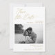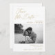 Cette photo en or moderne sauvez la carte de date comporte une photo des futurs mariés jumelés à un élégant script doré romantique.